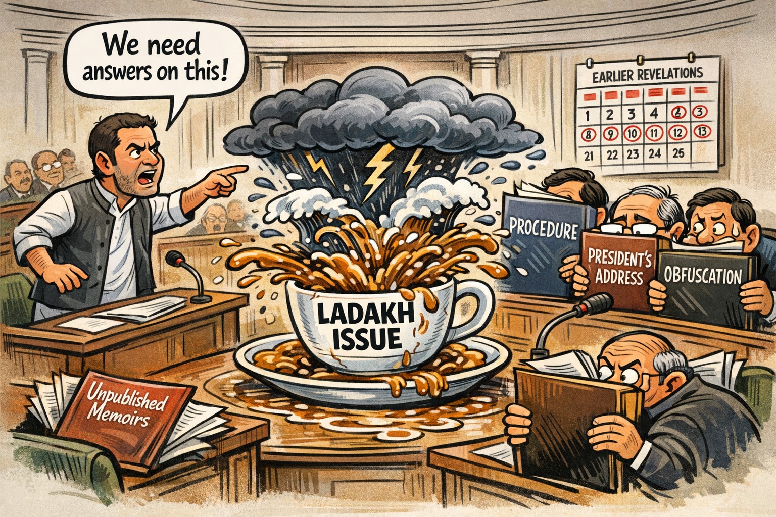 The storm in the tea cup in Ladakh raised allegedly by the unpublished book by Gen Narawane, whose excerpts appeared in a magazine some time ago, refuses to die down. This time it was Rahul Gandhi who raised the issue in the parliament, seeking clarification from the govt. As per parliamentary procedure and traditions, the President’s address is not the appropriate occasion to raise this issue, as the responses have to be restricted to the matters included in the address per se. But notwithstanding that, the issue having been raised in public on earlier occasion as well, the treasury benches should have responded in a befitting manner rather than brusquely obfuscate it blatantly. Obviously the opposition parties will draw political mileage out of any such developments. Government on its part should have assured the LOP that the issue will be responded to in the parliament after the President’s address and the responses thereto have been gone through.
